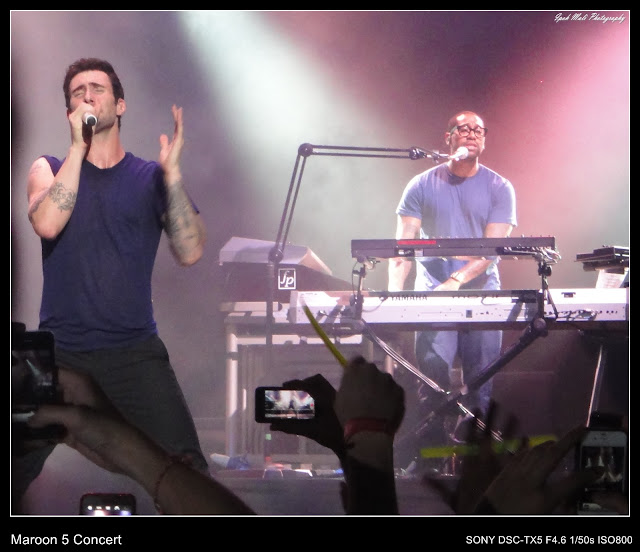 Our patience pays dividends, as the band finally emerged onto the stage at 10.00pm with their opening song, Payphone, the 1st hit single from their 4th studio album, Overexposed.